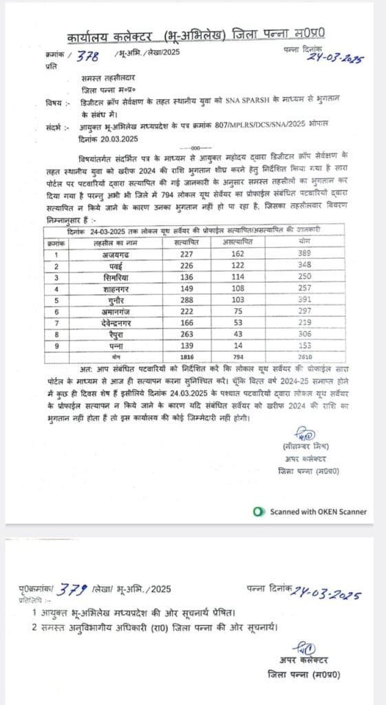 Leave a Comment / Uncategorized / By admin पन्ना: पटवारियों द्वारा सत्यापित प्रोफाइल वाले स्थानीय युवाओं का भुगतान किया गया, जबकि असत्यापित प्रोफाइल वाले युवाओं का भुगतान लंबित है।