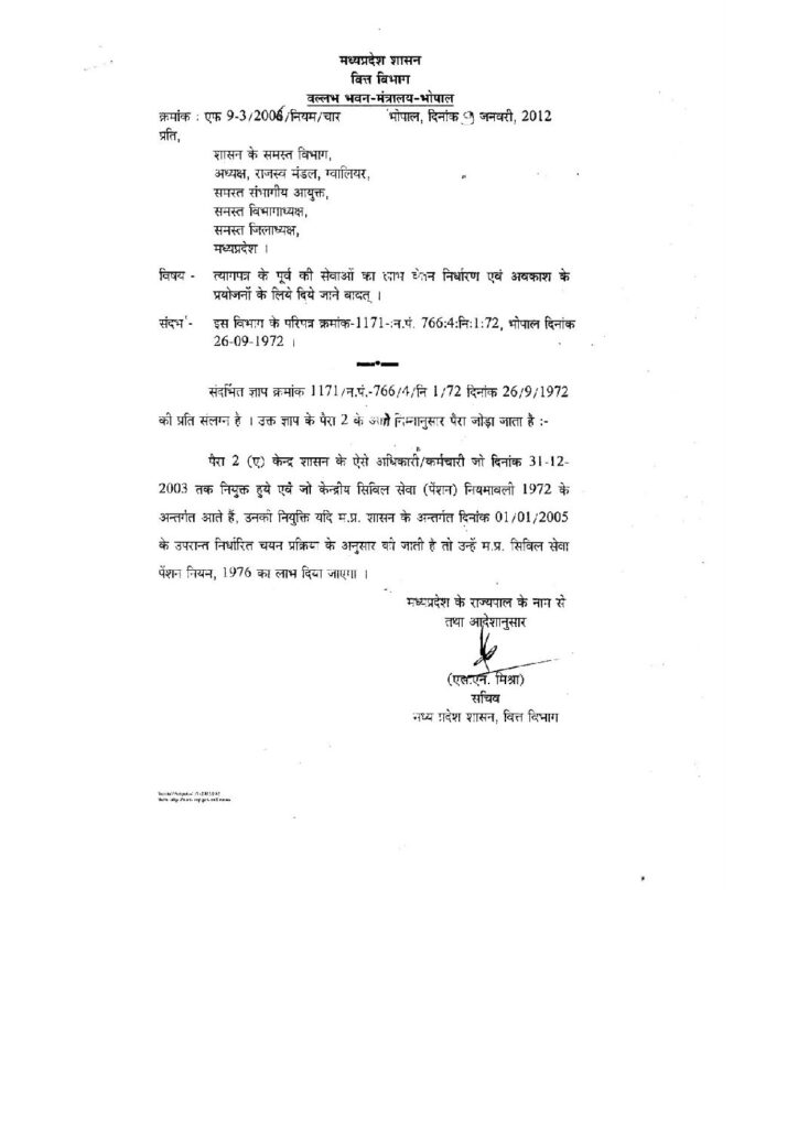 त्यागपत्र के पूर्व की सेवाओं का लाभ वेतन निर्धारण एवं अवकाश के प्रयोजनों के लिये दिए जाने बावत