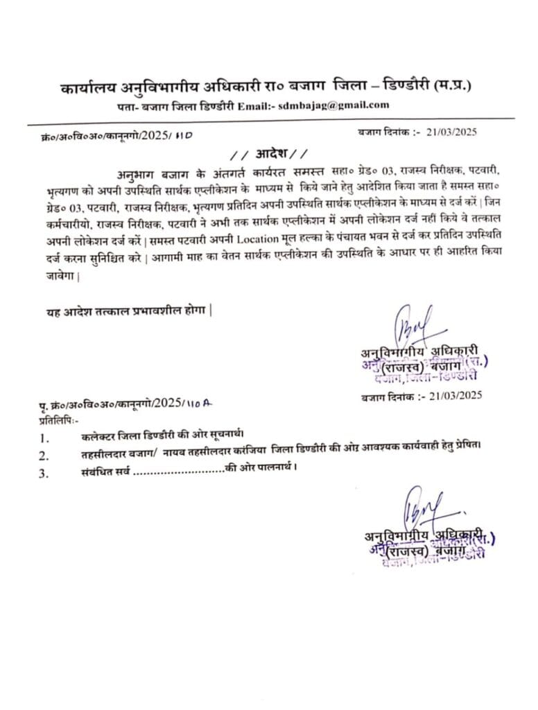 Dindori_Sarthak_240325 Leave a Comment / Uncategorized / By admin डिंडोरी : सार्थक एप से तहसील के सभी कर्मचारियों की उपस्थिति दर्ज करने आदेश