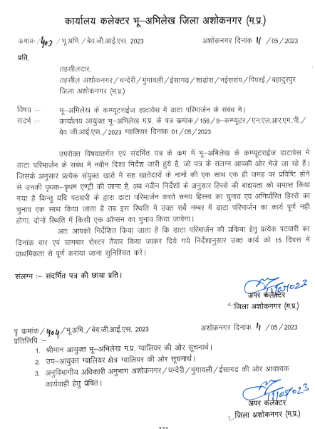 Ashoknagar_Data_Parimarjan Leave a Comment / Uncategorized / By admin अशोकनगर : डाटा परिमार्जन आदेशAshoknagar : Data Correction Order*******
