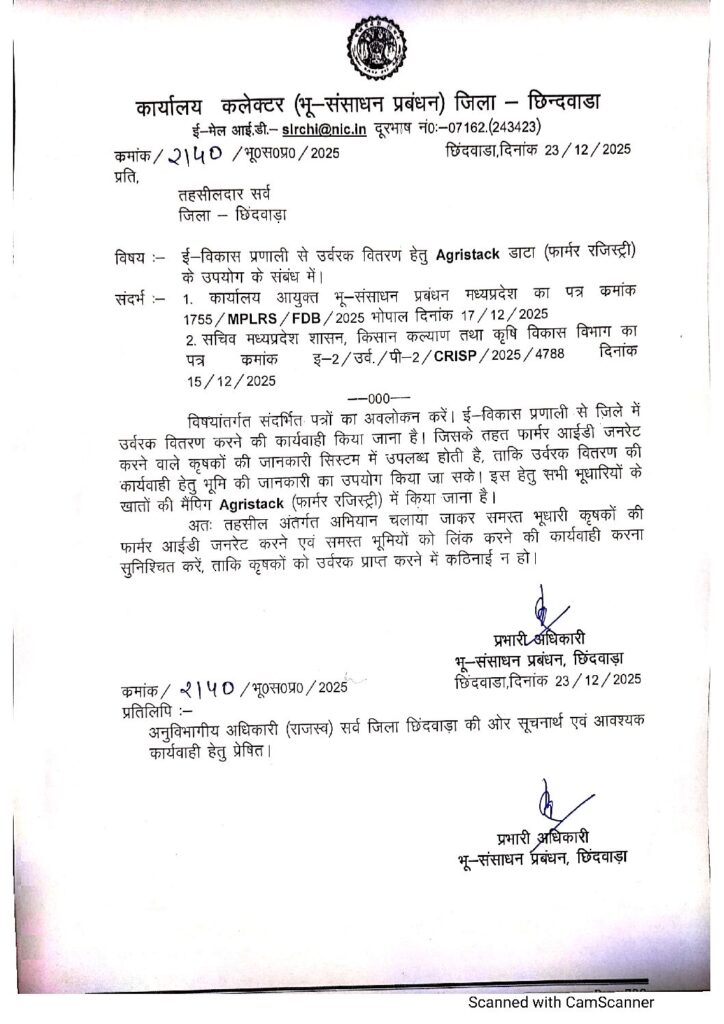 - जारीकर्ता: प्रभारी अधिकारी, भू-संसाधन प्रबंधन, छिंदवाड़ा ।+1