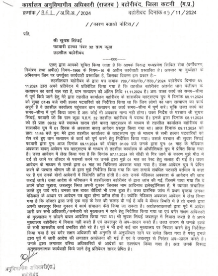 Leave a Comment / Uncategorized / By admin कटनी : अवकाश लेकर दुकान में काम करने वाले पटवारी को मिला नोटिसKatni: A notice was issued to the Patwari who took leave to work in the shop.