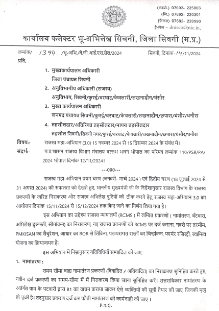 Leave a Comment / Uncategorized / By admin सिवनी : राजस्व महाभियान 3.0 के लिए रोस्टर कार्यक्रम निर्धारित Seoni: Roster program set for Revenue Mahabhiyan 3.0