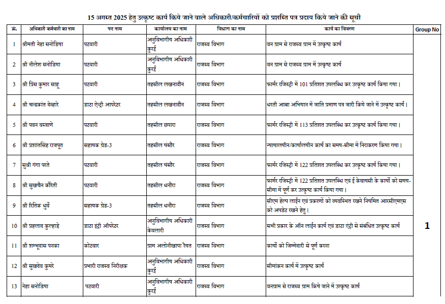Leave a Comment / Uncategorized / By admin सिवनी : 15 अगस्त 2025 में उत्कृष्ट कार्य के लिए प्रशस्ति पत्रSeoni: Certificate of excellence for outstanding work on August 15, 2025