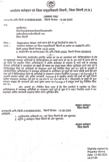 Leave a Comment / Uncategorized / By admin सिवनी : डिजिटाइजेशन वर्क कार्य प्रारम्भ होने से पूर्व तैयारियों के सम्बन्ध मेंSeoni: Regarding preparations before the commencement of the digitization work.