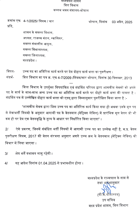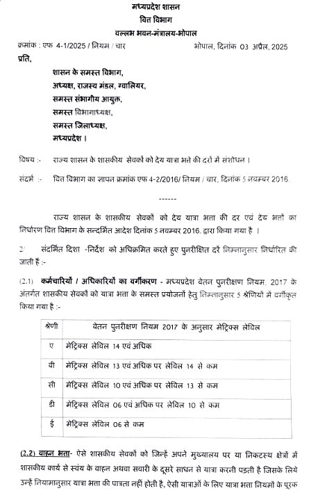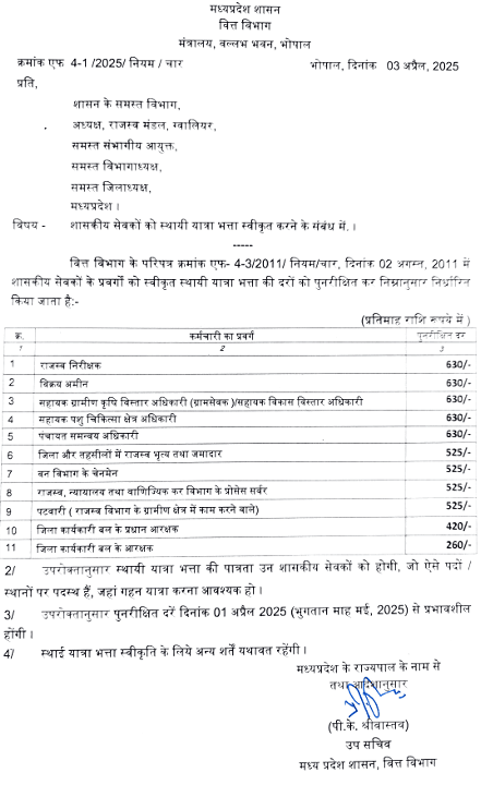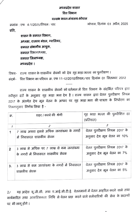 राज्य शासन के शासकीय सेवको को देय गृह भाड़ा भत्ता, यात्रा भत्ता, अव्यावसायिक भत्ता, स्थाई यात्रा भत्ता, दोहरा कार्य भत्ता, अनुग्रह भत्ते में संशोधन Amendment of house rent allowance, travel allowance, non-professional allowance, permanent travel allowance, dual duty allowance, and grace allowances payable to government employees of the state government.