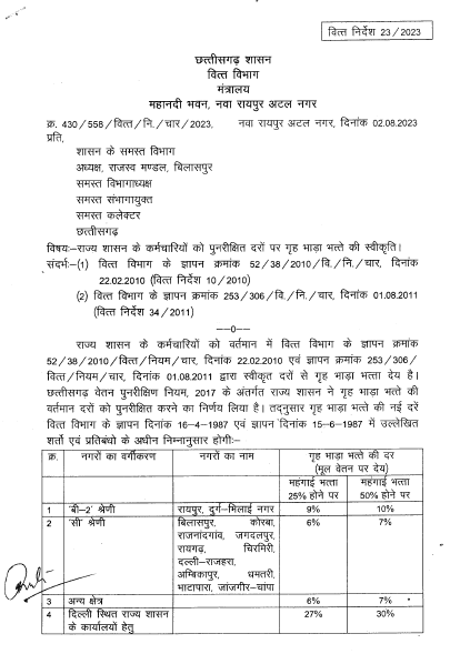 Leave a Comment / Uncategorized / By admin छत्तीसगढ़ : राज्य शासन के कर्मचारियों को गृह भाड़ा भत्ता की पुनरीक्षित दरेंChhattisgarh: Revised rates of house rent allowance to state government employees