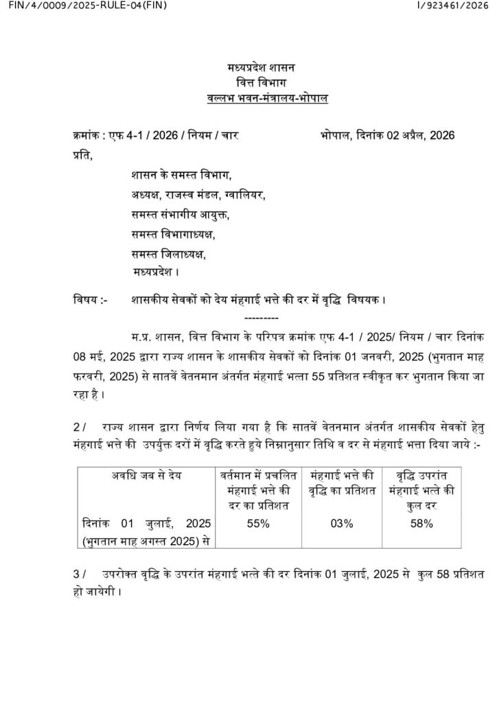 मध्यप्रदेश में कर्मचारियों का 3% महंगाई भत्ता बढ़ा, एरियर 6 किस्तों में मिलेगा