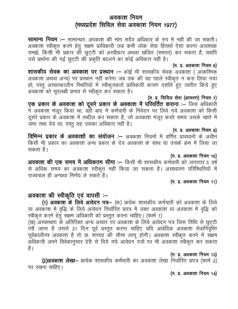 मध्यप्रदेश सिविल सेवायें (अवकाश) नियम, 1977 का सारांश