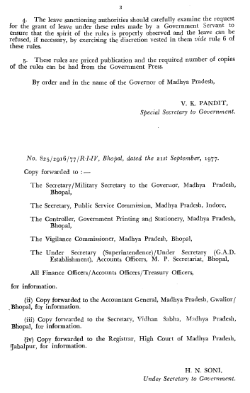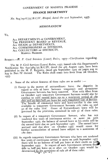 Leave a Comment / Uncategorized / By admin मध्य प्रदेश सिविल सेवा (अवकाश) नियम, 1977 (English)Madhya Pradesh Civil Service (Leave) Rules, 1977 (English)