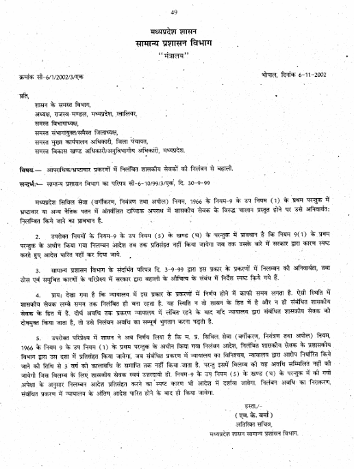 Leave a Comment / Uncategorized / By admin शासकीय कर्मचारियों का अनावश्यक निलंबन नहीं करने का आदेशOrder not to suspend government employees unnecessarily*****