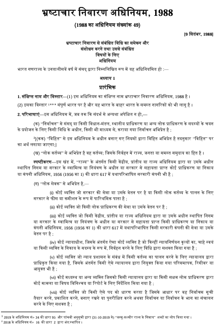 Leave a Comment / Uncategorized / By admin भ्रष्टाचार निवारण अधिनियम 1988Prevention of Corruption Act 1988