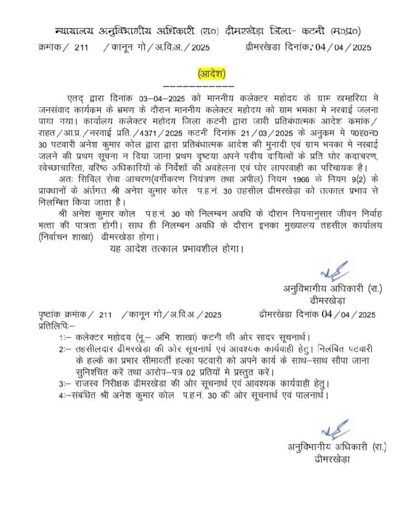 Katni_Narwai_080425 Leave a Comment / Uncategorized / By admin कटनी : नरवाई जलाने की सूचना न देने पर पटवारी निलंबित