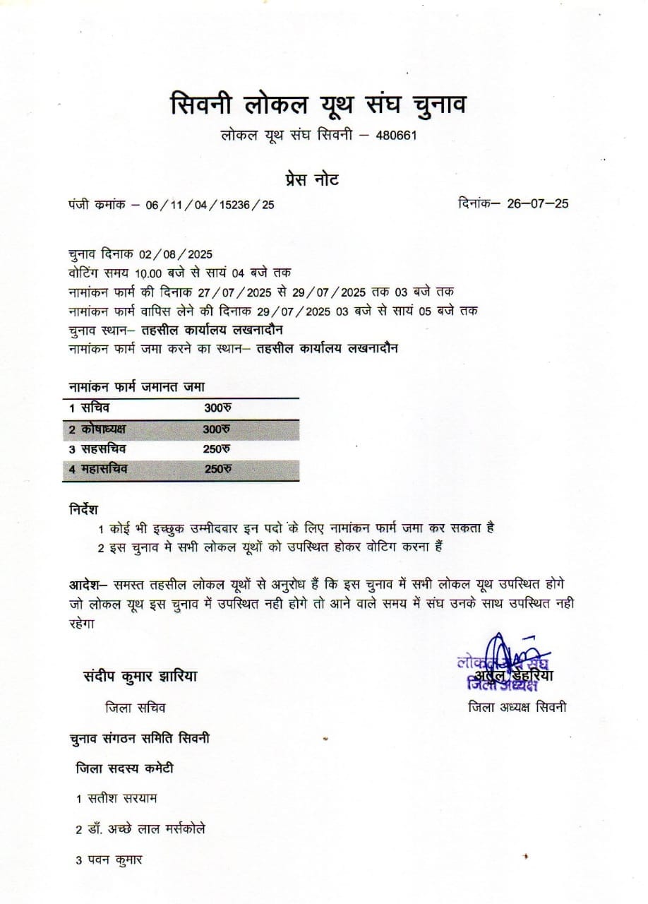 Local_Youth_Election_Seoni_260725 Leave a Comment / Uncategorized / By admin सिवनी : लोकल युथ संघ का चुनाव