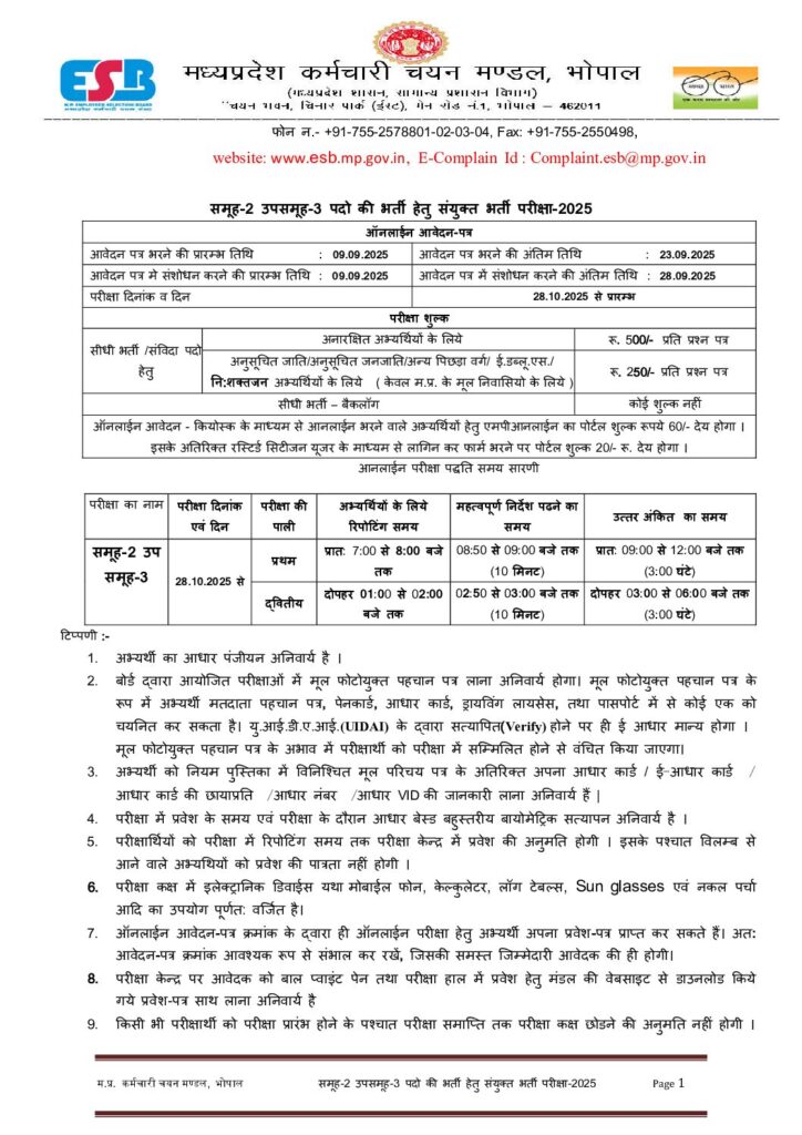 Joint_Recruitment_Examination-2025 Leave a Comment / Uncategorized / By admin समूह-2 उपसमूह-3 पदो की भर्ती हेतु संयुक्त भर्ती परीक्षा -2025Joint Recruitment Examination – 2025 for Group-2 Subgroup-3 Positions