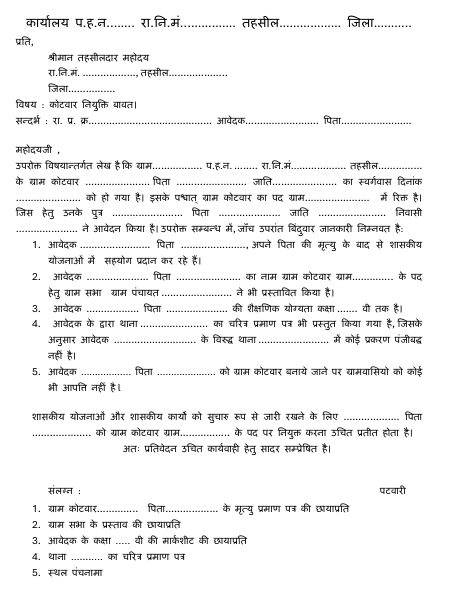 Kotwar_Niyukti Leave a Comment / Uncategorized / By admin कोटवार नियुक्ति हेतु प्रतिवेदनReport for Appointment of Kotwar