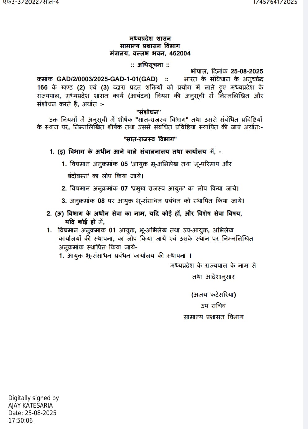 Ayukt_Bhu_Abhilekh_Abolition_250825 Leave a Comment / Uncategorized / By admin आयुक्त भू अभिलेख तथा भू परिमाप और बंदोबस्त का लोपAbolition of the Commissioner of Land Records and Land Survey and Settlement