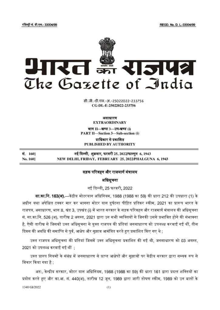 हिट एंड रन मोटरयान दुर्घटना पीड़ित प्रतिकर योजना, 2022