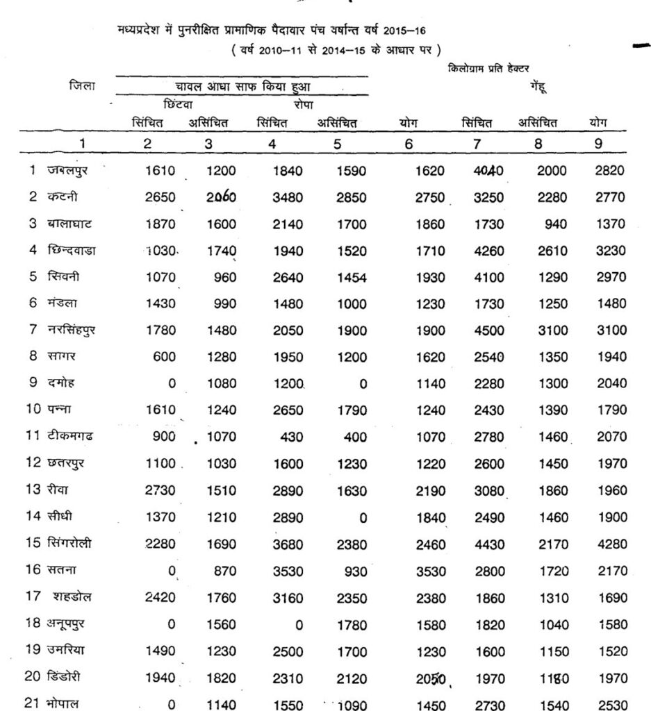 - सामग्री: दस्तावेज़ में जिलेवार और फसलवार प्रामाणिक पैदावार के आंकड़े (किलोग्राम प्रति हेक्टर में) संलग्न हैं ।