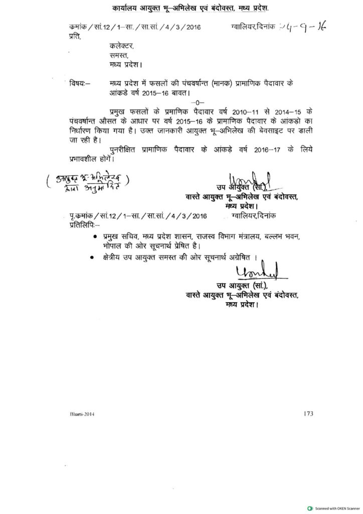यह दस्तावेज़ मध्य प्रदेश में फसलों की पंचवर्षान्त (मानक) प्रामाणिक पैदावार के आंकड़े वर्ष 2015-16 के संबंध में है । इसे आयुक्त भू-अभिलेख एवं बंदोबस्त, मध्य प्रदेश द्वारा जारी किया गया है ।