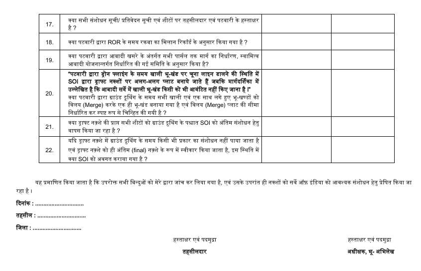Leave a Comment / Uncategorized / By admin ग्राउन्ड ट्रूथिंग के बाद SOI भेजने से पहले checklistGround Truthing Checklist